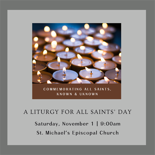 Event Description:All are invited on Saturday, November 1, at 9:00am, when we will observe the Feast of All Saints with a time of quiet reflection and a service of Holy Eucharist.