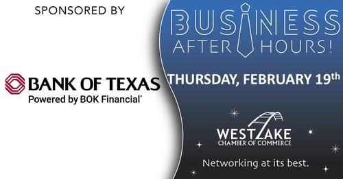 Name: Business After Hours: Bank of TexasDate: February 19, 2026Time: 5:30 PM - 7:00 PM CSTRegistration: Register Now