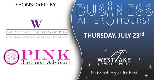 Name: Business After Hours: Law Office of Jennifer D. Ward & Pink Business AdvisorsDate: July 23, 2026Time: 5:30 PM - 7:00 PM CDTRegistration: Register Now