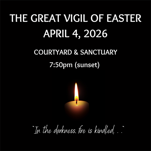 Join St. Michael's at 7:50 pm (sunset) on Saturday, April 4, for a stirring Easter Vigil service--a transition from darkness into the light of Christ’s resurrection. (Caution: incense will be present.)Location:St. Michael's Episcopal Church