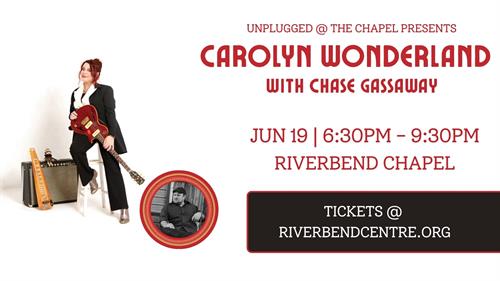 Name: Riverbend Centre For The Arts Presents Unplugged @ The Chapel Featuring Carolyn Wonderland With Chase GassawayDate: June 19, 2025Time: 6:30 PM - 9:30 PM CDT